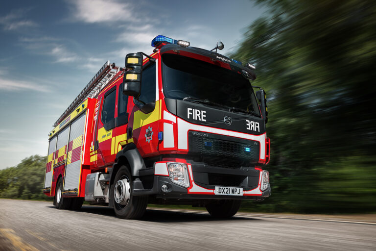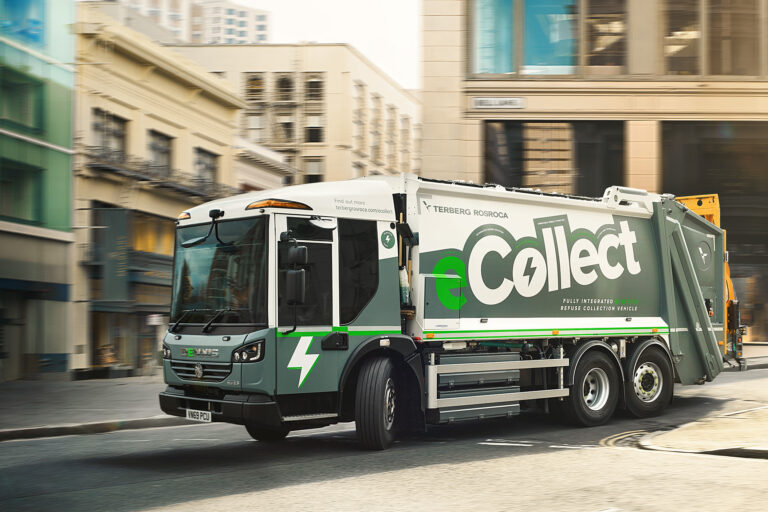 Dennis Eagle refuse truck photographed in motion